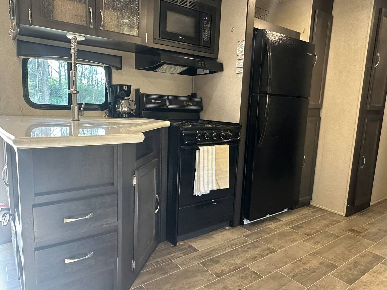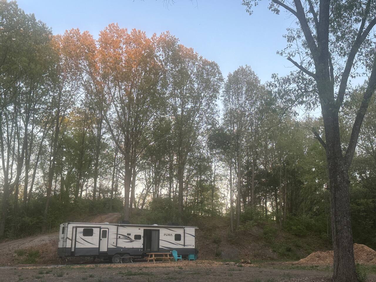 Relax and rejuvenate with a luxurious glamping experience in the woods. Off the beaten trail - Enjoy your own beautiful lake-view and amazing site for star gazing. The lake is great for swimming and fishing. The pool opens in May and their is a spa right near the pool. Our goal is that you leave refreshed after spending time in nature and in the beautiful wildflower camper. Hangout by the campfire- in fact, keep a fire going all day! Of course there is full electricity, water, and sewer!